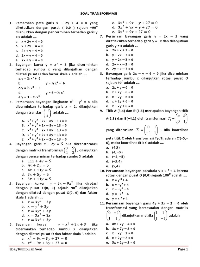Soal pg dan pembahasan tentang transformasi geometri kelas 9. Tentukan rasio dari deret tersebut! Download soal osn/ksn bidang matematika sd/smp/sma; Klik pojok kanan atas untuk memperbesar. Untuk melihat preview soal silahkan cek pada kotak di bawah ini,